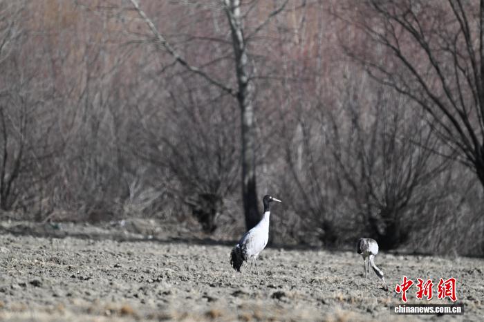 圖為雅魯藏布江干流谷地農(nóng)田里的黑頸鶴。貢嘎來(lái)松攝